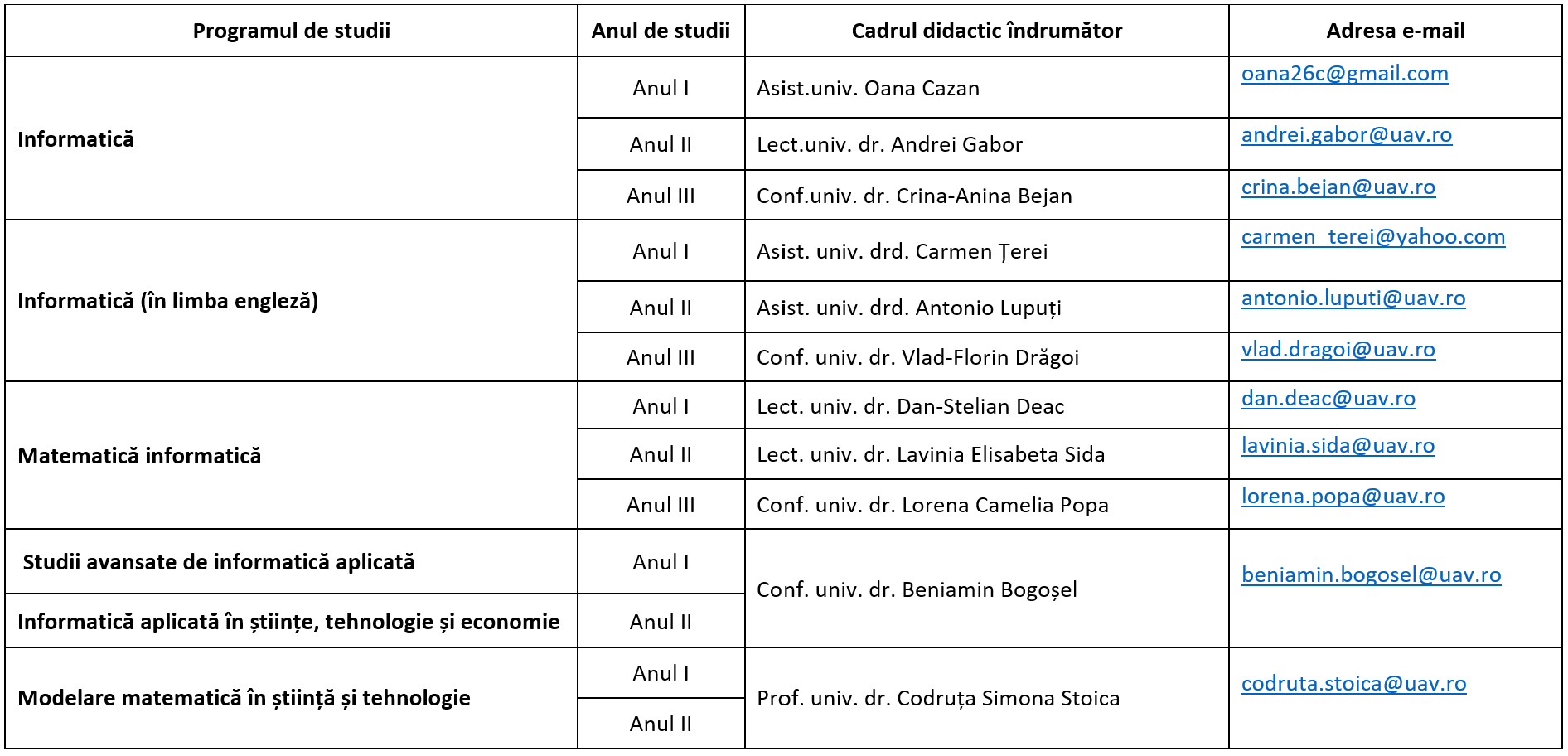 SEFI DE AN PENTRU PROGRAMELE DE STUDII DE LICENȚĂ ȘI DE MASTER